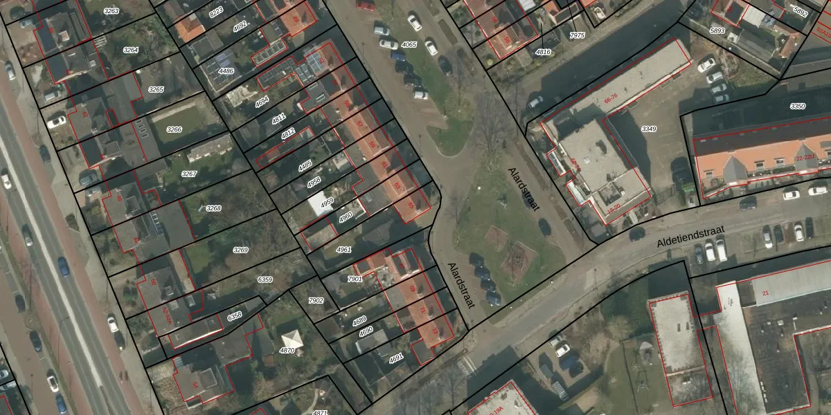 Alardstraat 65 is gelegen op kadastraal perceel UDN00M4961. Deze kadastrale aanduiding is uniek en wordt gebruikt door het Kadaster om eigendomsrechten en andere zakelijke rechten vast te leggen. Het perceel maakt onderdeel uit van de kadastrale gemeente Uden.