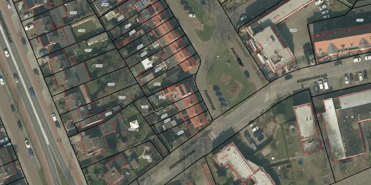 Alardstraat 67 is gelegen op kadastraal perceel UDN00M7901. Deze kadastrale aanduiding is uniek en wordt gebruikt door het Kadaster om eigendomsrechten en andere zakelijke rechten vast te leggen. Het perceel maakt onderdeel uit van de kadastrale gemeente Uden.