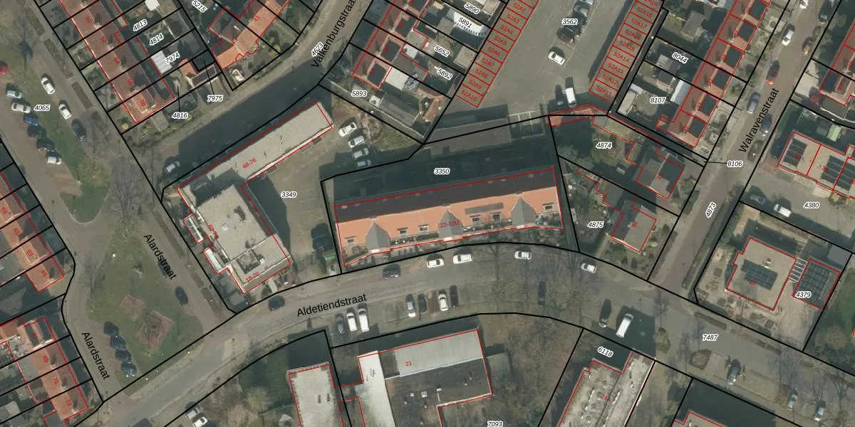 Het perceel waarop Aldetiendstraat 22-H staat heeft een oppervlakte van 1415 m². Dit is een zeer groot perceel. De perceeloppervlakte wordt geregistreerd door het Kadaster. Gedetailleerde informatie over de maten van dit perceel kunt u vinden in het rapport Kadastrale kaart met maatvoering van Aldetiendstraat 22-H.