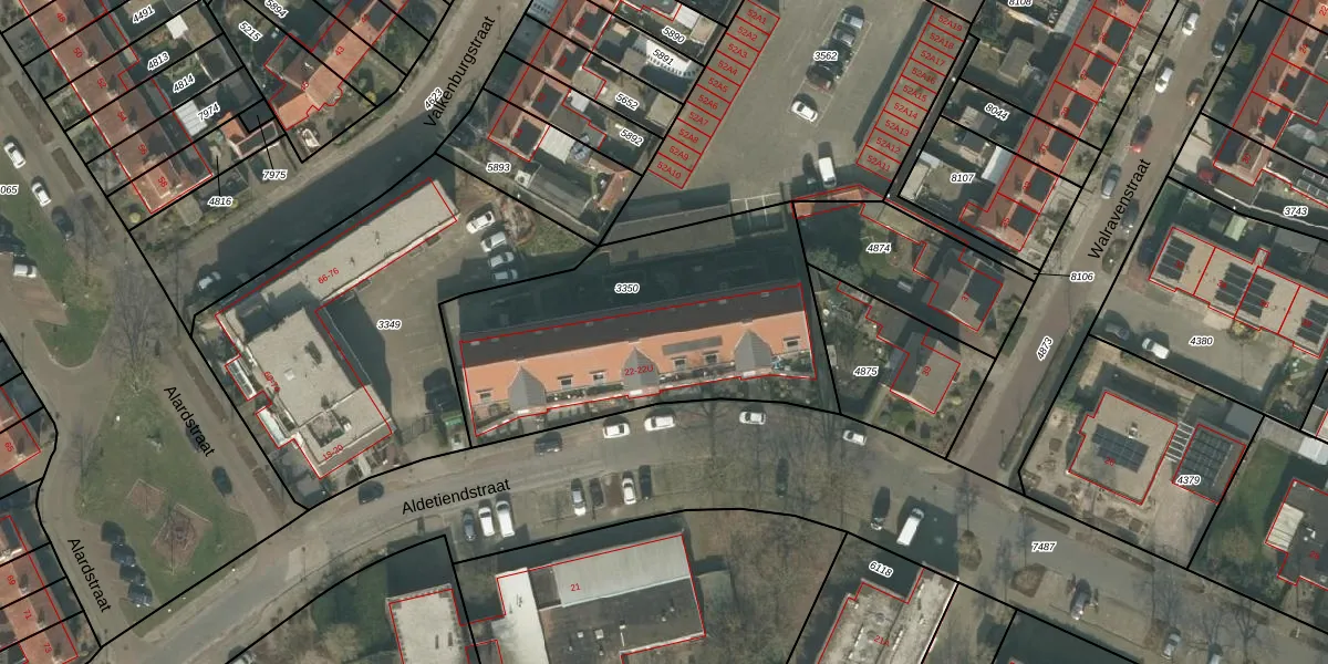 Het perceel waarop Aldetiendstraat 22-M staat heeft een oppervlakte van 1415 m². Dit is een zeer groot perceel. De perceeloppervlakte wordt geregistreerd door het Kadaster. Gedetailleerde informatie over de maten van dit perceel kunt u vinden in het rapport Kadastrale kaart met maatvoering van Aldetiendstraat 22-M.