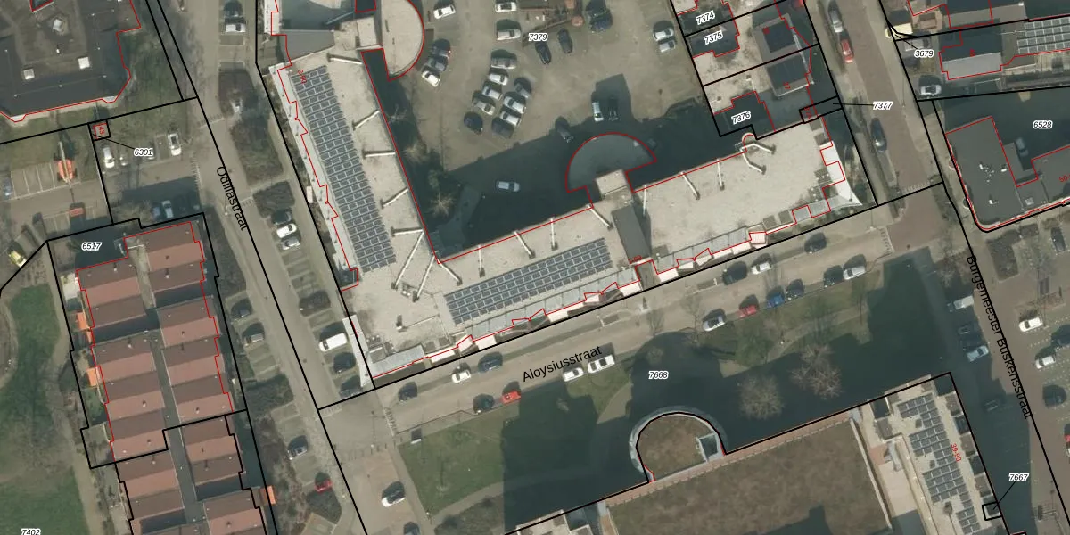Het perceel waarop Aloysiusstraat 55 staat heeft een oppervlakte van 7184 m². Dit is een zeer groot perceel. De perceeloppervlakte wordt geregistreerd door het Kadaster. Gedetailleerde informatie over de maten van dit perceel kunt u vinden in het rapport Kadastrale kaart met maatvoering van Aloysiusstraat 55.