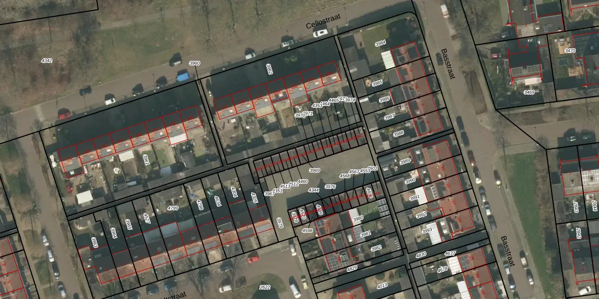 Gebruik de zoekbalk of klik op een perceel voor informatie over de adressen binnen dit perceel.