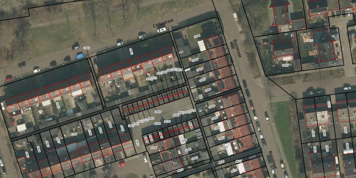 Gebruik de zoekbalk of klik op een perceel voor informatie over de adressen binnen dit perceel.