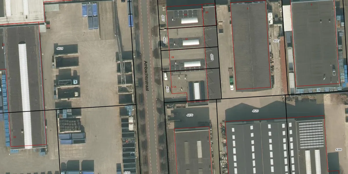 Het perceel waarop Ambachtsstraat 1 staat heeft een oppervlakte van 582 m². Dit is een groot perceel. De perceeloppervlakte wordt geregistreerd door het Kadaster. Gedetailleerde informatie over de maten van dit perceel kunt u vinden in het rapport Kadastrale kaart met maatvoering van Ambachtsstraat 1.