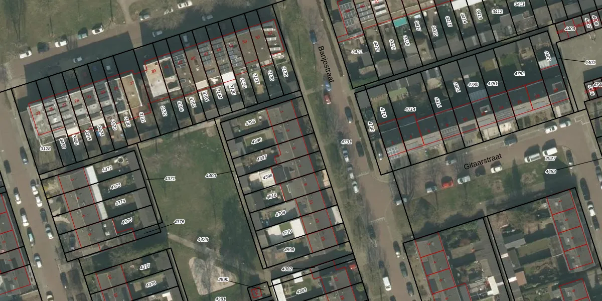 Het perceel waarop Banjostraat 5 staat heeft een oppervlakte van 181 m². Dit is een middelgroot perceel. De perceeloppervlakte wordt geregistreerd door het Kadaster. Gedetailleerde informatie over de maten van dit perceel kunt u vinden in het rapport Kadastrale kaart met maatvoering van Banjostraat 5.