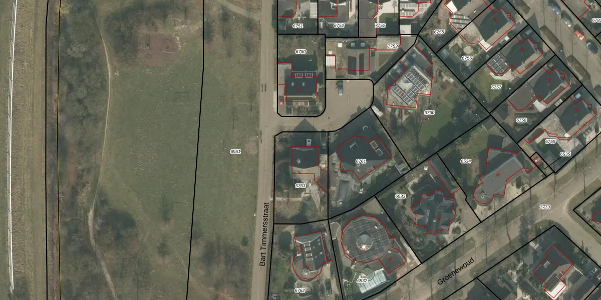 Het perceel waarop Bart Timmersstraat 1 staat heeft een oppervlakte van 540 m². Dit is een groot perceel. De perceeloppervlakte wordt geregistreerd door het Kadaster. Gedetailleerde informatie over de maten van dit perceel kunt u vinden in het rapport Kadastrale kaart met maatvoering van Bart Timmersstraat 1.