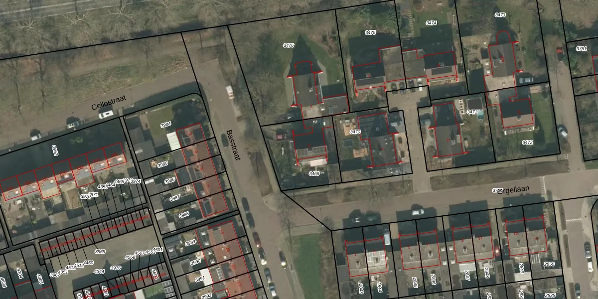 Gebruik de zoekbalk of klik op een perceel voor informatie over de adressen binnen dit perceel.