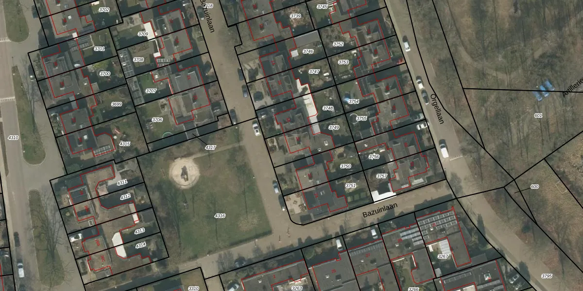 Het perceel waarop Bazuinlaan 20 staat heeft een oppervlakte van 298 m². Dit is een middelgroot perceel. De perceeloppervlakte wordt geregistreerd door het Kadaster. Gedetailleerde informatie over de maten van dit perceel kunt u vinden in het rapport Kadastrale kaart met maatvoering van Bazuinlaan 20.