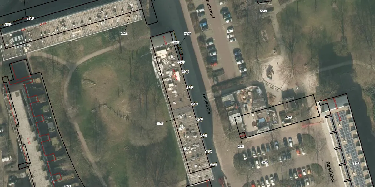Het perceel waarop Beatrixhof 114 staat heeft een oppervlakte van 843 m². Dit is een groot perceel. De perceeloppervlakte wordt geregistreerd door het Kadaster. Gedetailleerde informatie over de maten van dit perceel kunt u vinden in het rapport Kadastrale kaart met maatvoering van Beatrixhof 114.