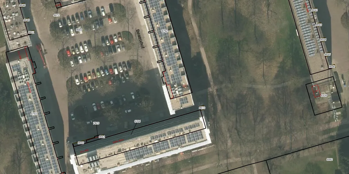 Het perceel waarop Beatrixhof 428 staat heeft een oppervlakte van 905 m². Dit is een groot perceel. De perceeloppervlakte wordt geregistreerd door het Kadaster. Gedetailleerde informatie over de maten van dit perceel kunt u vinden in het rapport Kadastrale kaart met maatvoering van Beatrixhof 428.