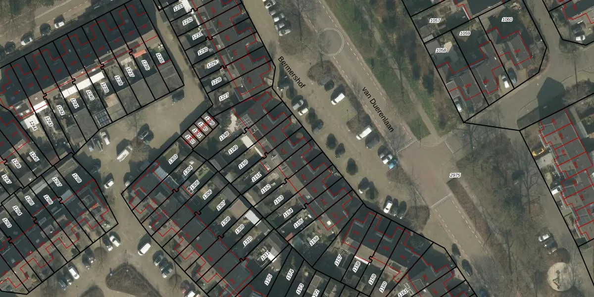 Het perceel waarop Bermershof 223 staat heeft een oppervlakte van 167 m². Dit is een middelgroot perceel. De perceeloppervlakte wordt geregistreerd door het Kadaster. Gedetailleerde informatie over de maten van dit perceel kunt u vinden in het rapport Kadastrale kaart met maatvoering van Bermershof 223.