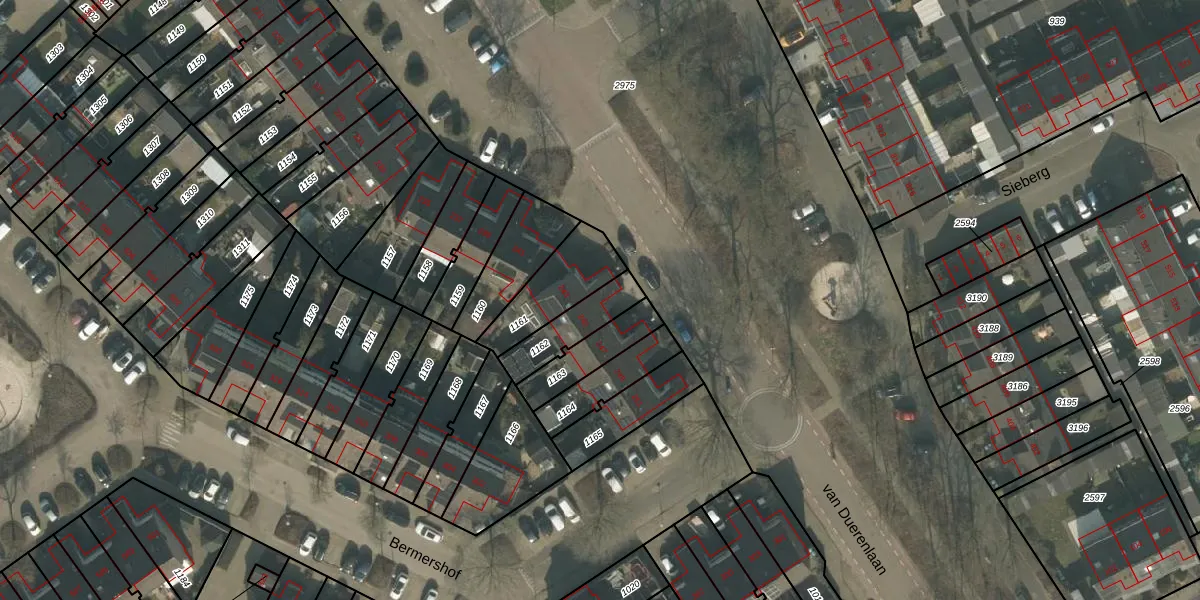 Het perceel waarop Bermershof 245 staat heeft een oppervlakte van 143 m². Dit is een middelgroot perceel. De perceeloppervlakte wordt geregistreerd door het Kadaster. Gedetailleerde informatie over de maten van dit perceel kunt u vinden in het rapport Kadastrale kaart met maatvoering van Bermershof 245.