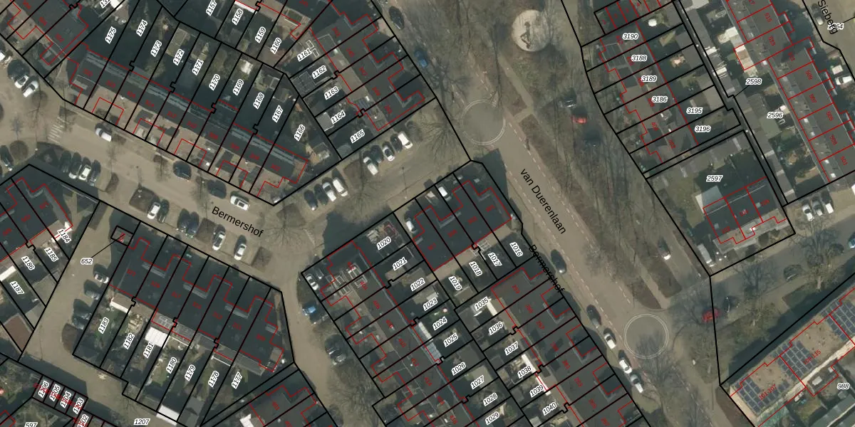 Gebruik de zoekbalk of klik op een perceel voor informatie over de adressen binnen dit perceel.