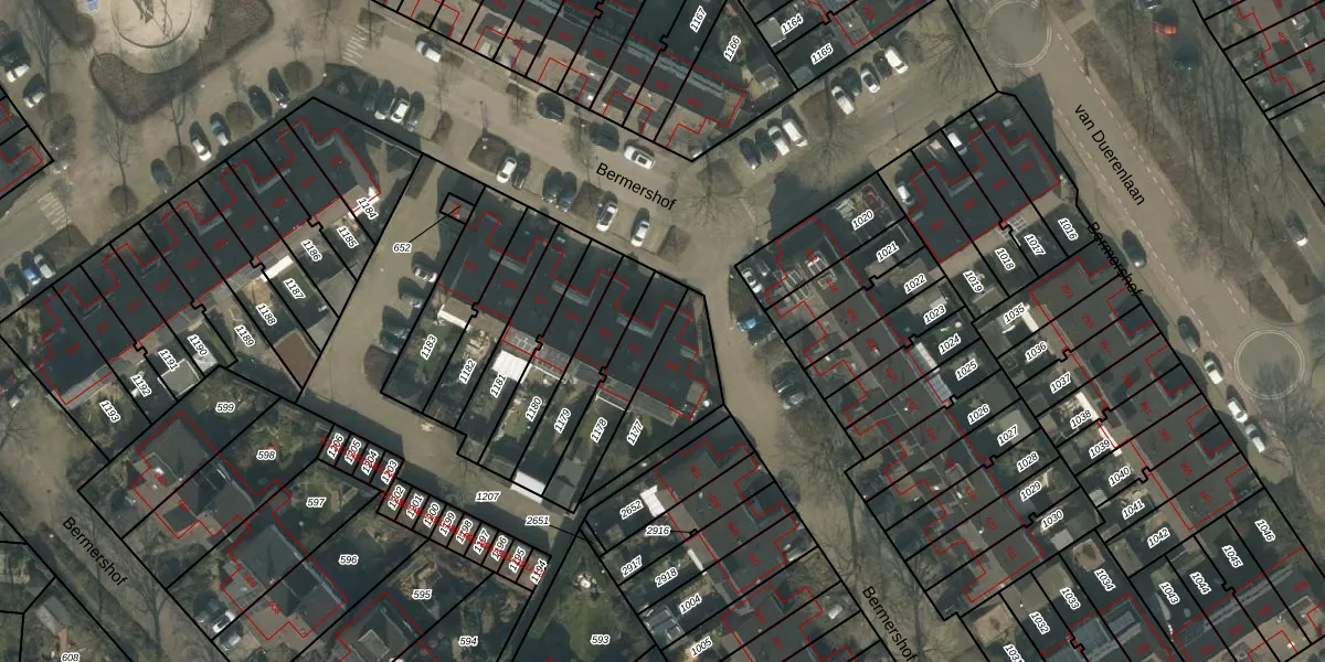 Het perceel waarop Bermershof 311 staat heeft een oppervlakte van 206 m². Dit is een middelgroot perceel. De perceeloppervlakte wordt geregistreerd door het Kadaster. Gedetailleerde informatie over de maten van dit perceel kunt u vinden in het rapport Kadastrale kaart met maatvoering van Bermershof 311.
