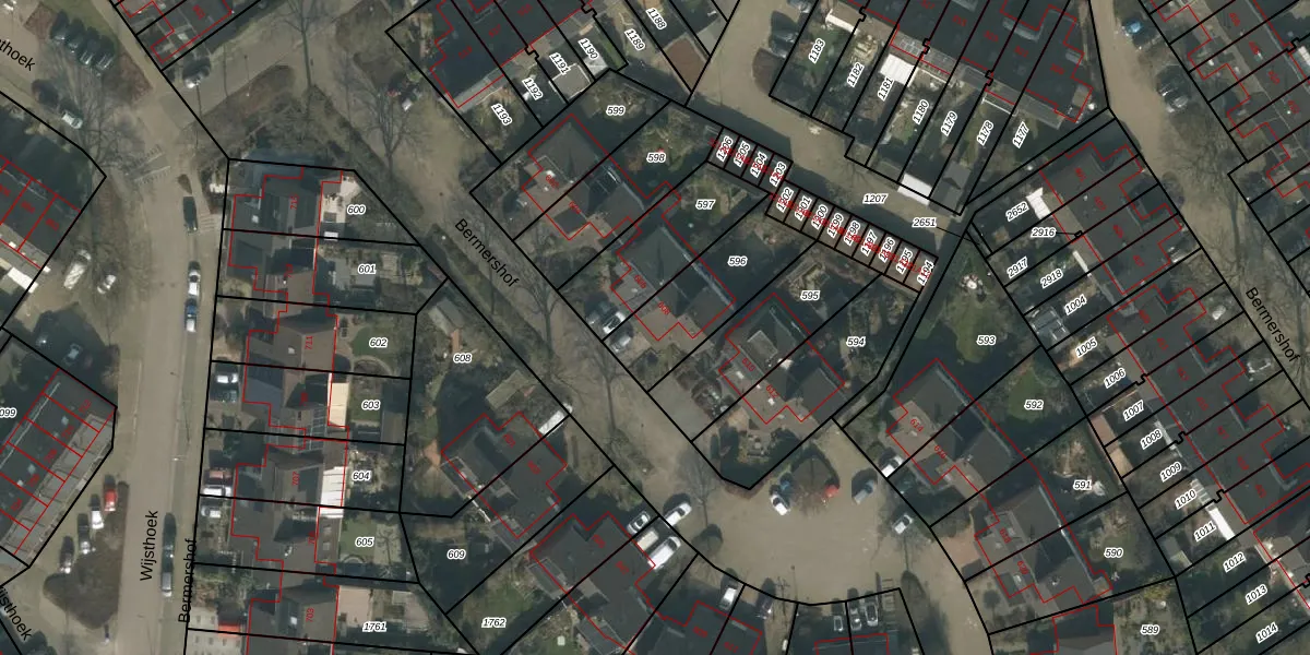 Het perceel waarop Bermershof 608 staat heeft een oppervlakte van 340 m². Dit is een groot perceel. De perceeloppervlakte wordt geregistreerd door het Kadaster. Gedetailleerde informatie over de maten van dit perceel kunt u vinden in het rapport Kadastrale kaart met maatvoering van Bermershof 608.