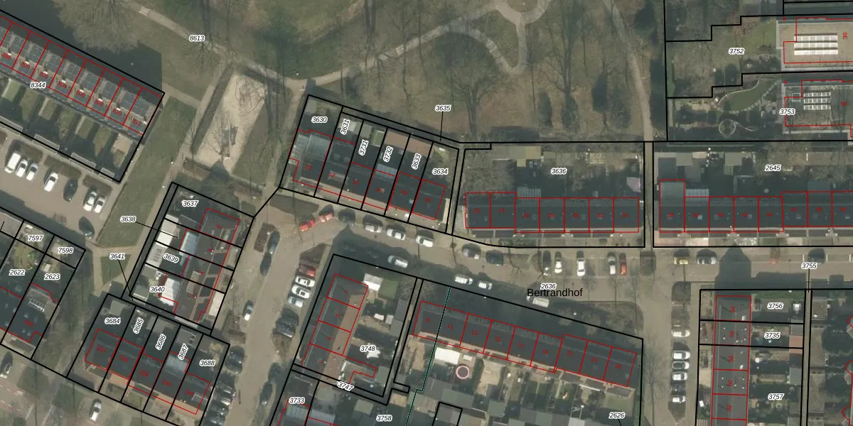 Het perceel waarop Bertrandhof 20 staat heeft een oppervlakte van 155 m². Dit is een middelgroot perceel. De perceeloppervlakte wordt geregistreerd door het Kadaster. Gedetailleerde informatie over de maten van dit perceel kunt u vinden in het rapport Kadastrale kaart met maatvoering van Bertrandhof 20.