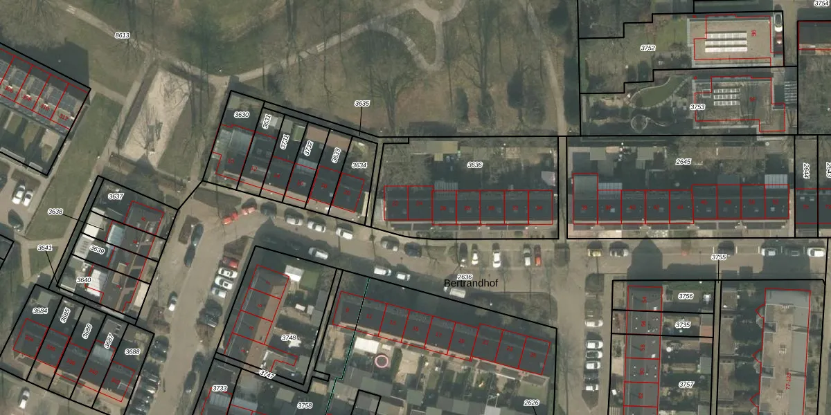 Het perceel waarop Bertrandhof 24 staat heeft een oppervlakte van 1050 m². Dit is een zeer groot perceel. De perceeloppervlakte wordt geregistreerd door het Kadaster. Gedetailleerde informatie over de maten van dit perceel kunt u vinden in het rapport Kadastrale kaart met maatvoering van Bertrandhof 24.