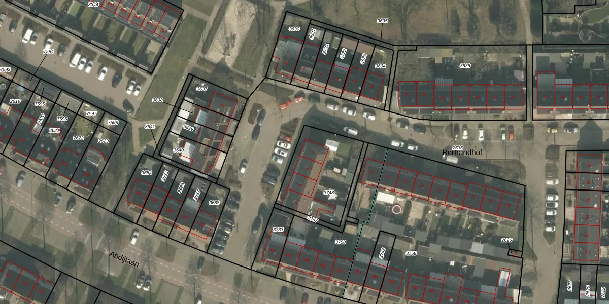 Het perceel waarop Bertrandhof 7 staat heeft een oppervlakte van 604 m². Dit is een groot perceel. De perceeloppervlakte wordt geregistreerd door het Kadaster. Gedetailleerde informatie over de maten van dit perceel kunt u vinden in het rapport Kadastrale kaart met maatvoering van Bertrandhof 7.