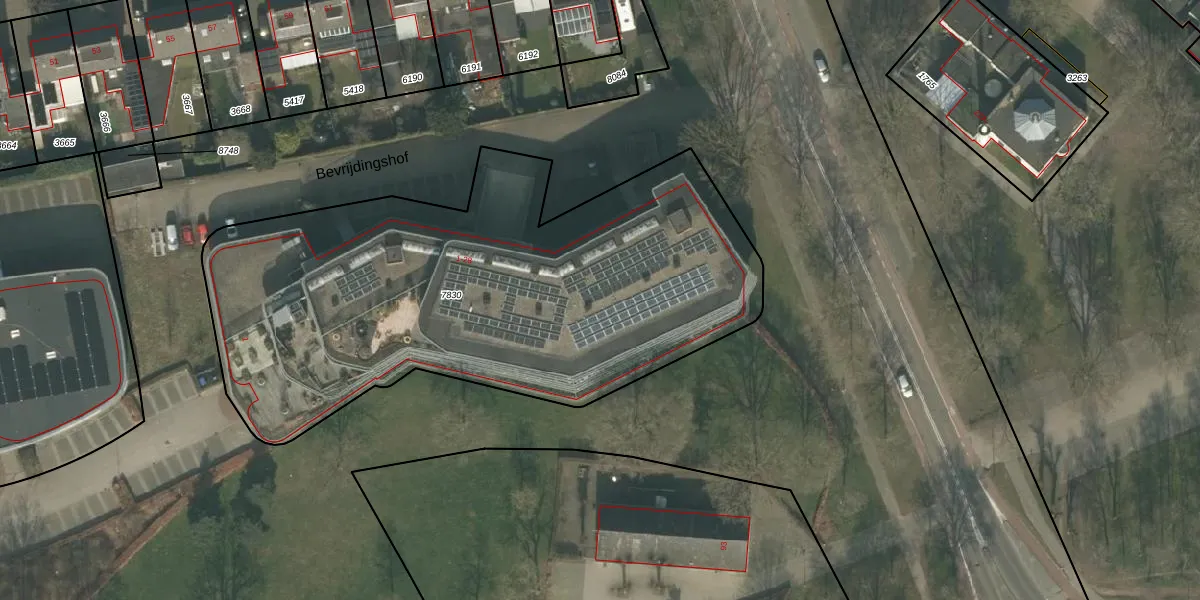 Het perceel waarop Bevrijdingshof 18 staat heeft een oppervlakte van 2947 m². Dit is een zeer groot perceel. De perceeloppervlakte wordt geregistreerd door het Kadaster. Gedetailleerde informatie over de maten van dit perceel kunt u vinden in het rapport Kadastrale kaart met maatvoering van Bevrijdingshof 18.