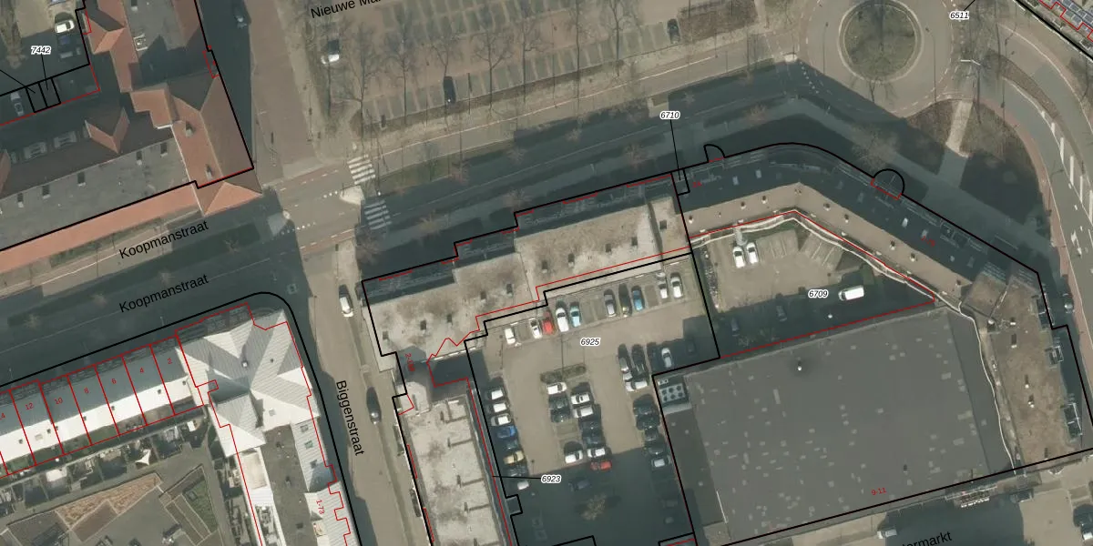 Het perceel waarop Biggenstraat 12 staat heeft een oppervlakte van 1973 m². Dit is een zeer groot perceel. De perceeloppervlakte wordt geregistreerd door het Kadaster. Gedetailleerde informatie over de maten van dit perceel kunt u vinden in het rapport Kadastrale kaart met maatvoering van Biggenstraat 12.