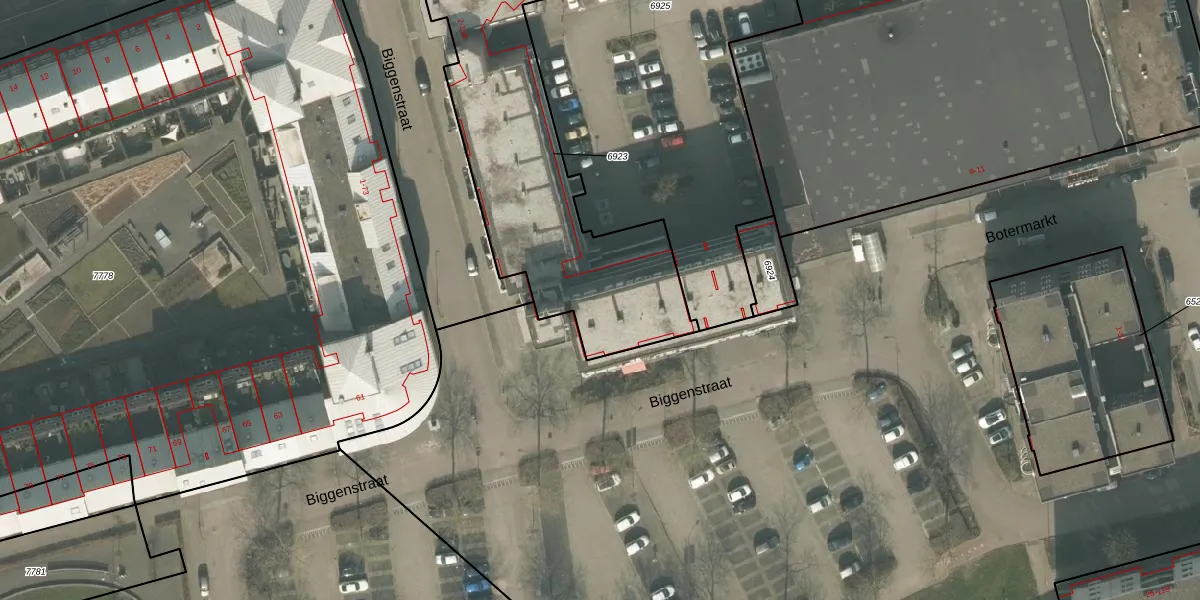 Het perceel waarop Biggenstraat 136 staat heeft een oppervlakte van 1973 m². Dit is een zeer groot perceel. De perceeloppervlakte wordt geregistreerd door het Kadaster. Gedetailleerde informatie over de maten van dit perceel kunt u vinden in het rapport Kadastrale kaart met maatvoering van Biggenstraat 136.