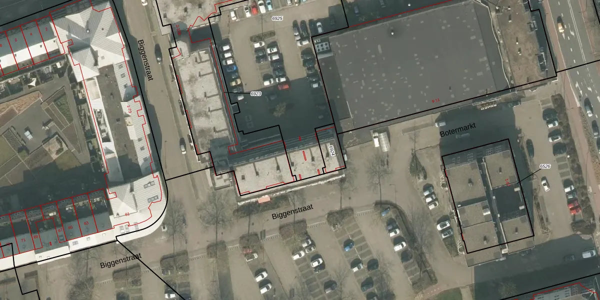 Het perceel waarop Biggenstraat 142 staat heeft een oppervlakte van 1882 m². Dit is een zeer groot perceel. De perceeloppervlakte wordt geregistreerd door het Kadaster. Gedetailleerde informatie over de maten van dit perceel kunt u vinden in het rapport Kadastrale kaart met maatvoering van Biggenstraat 142.