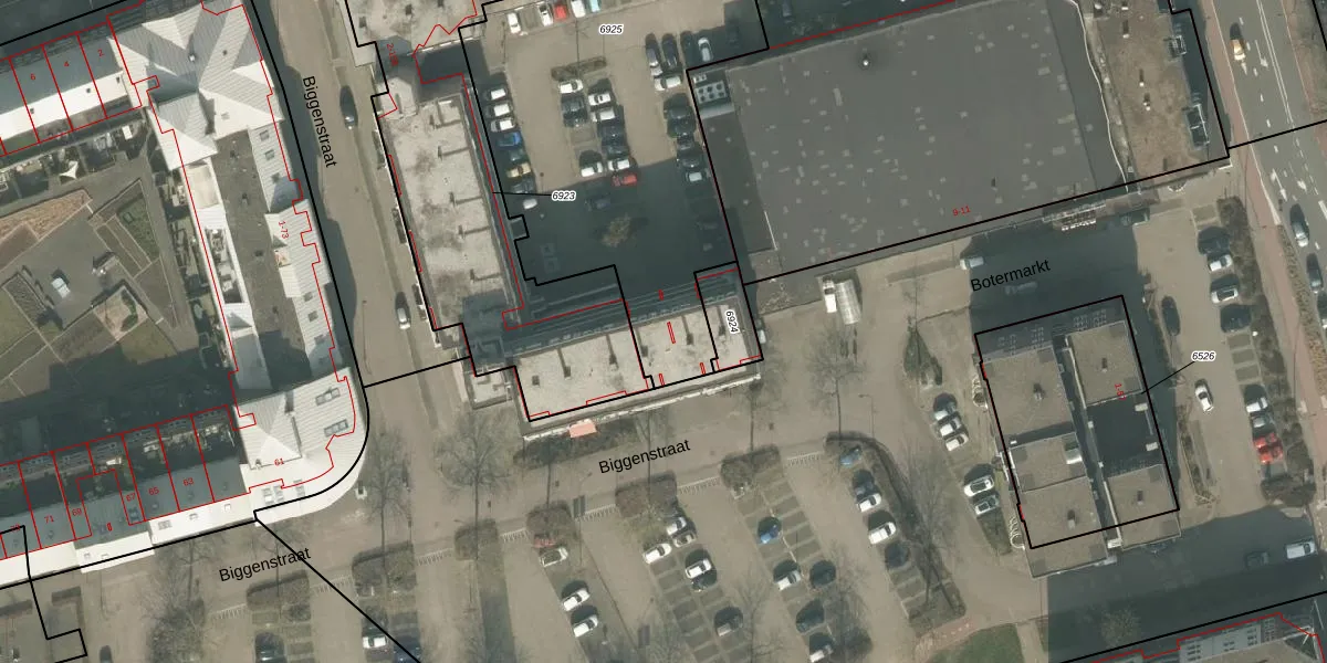 Het perceel waarop Biggenstraat 154 staat heeft een oppervlakte van 1882 m². Dit is een zeer groot perceel. De perceeloppervlakte wordt geregistreerd door het Kadaster. Gedetailleerde informatie over de maten van dit perceel kunt u vinden in het rapport Kadastrale kaart met maatvoering van Biggenstraat 154.