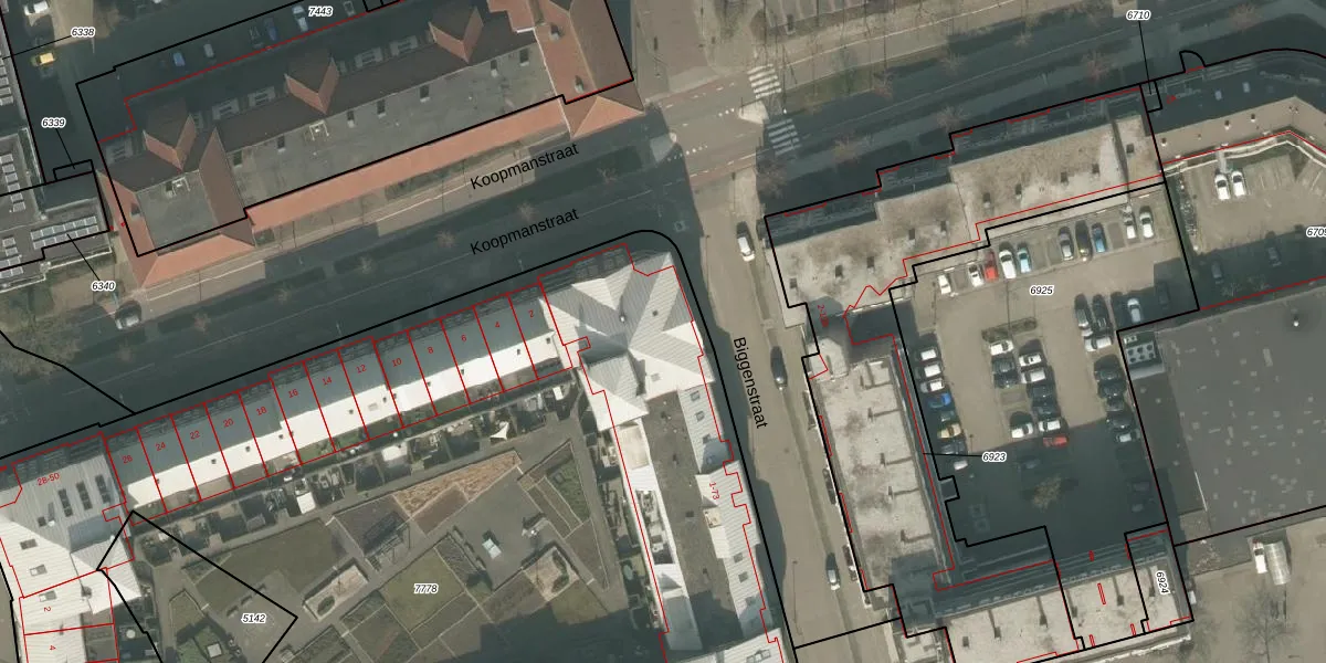 Het perceel waarop Biggenstraat 19 staat heeft een oppervlakte van 8022 m². Dit is een zeer groot perceel. De perceeloppervlakte wordt geregistreerd door het Kadaster. Gedetailleerde informatie over de maten van dit perceel kunt u vinden in het rapport Kadastrale kaart met maatvoering van Biggenstraat 19.