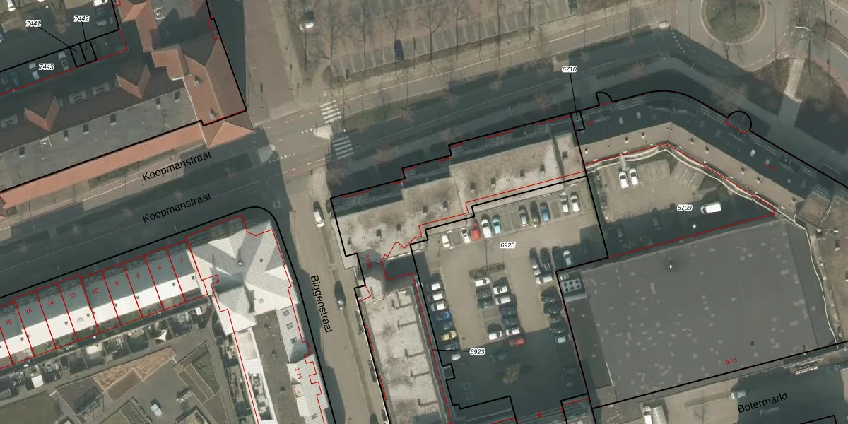 Het perceel waarop Biggenstraat 28 staat heeft een oppervlakte van 1973 m². Dit is een zeer groot perceel. De perceeloppervlakte wordt geregistreerd door het Kadaster. Gedetailleerde informatie over de maten van dit perceel kunt u vinden in het rapport Kadastrale kaart met maatvoering van Biggenstraat 28.