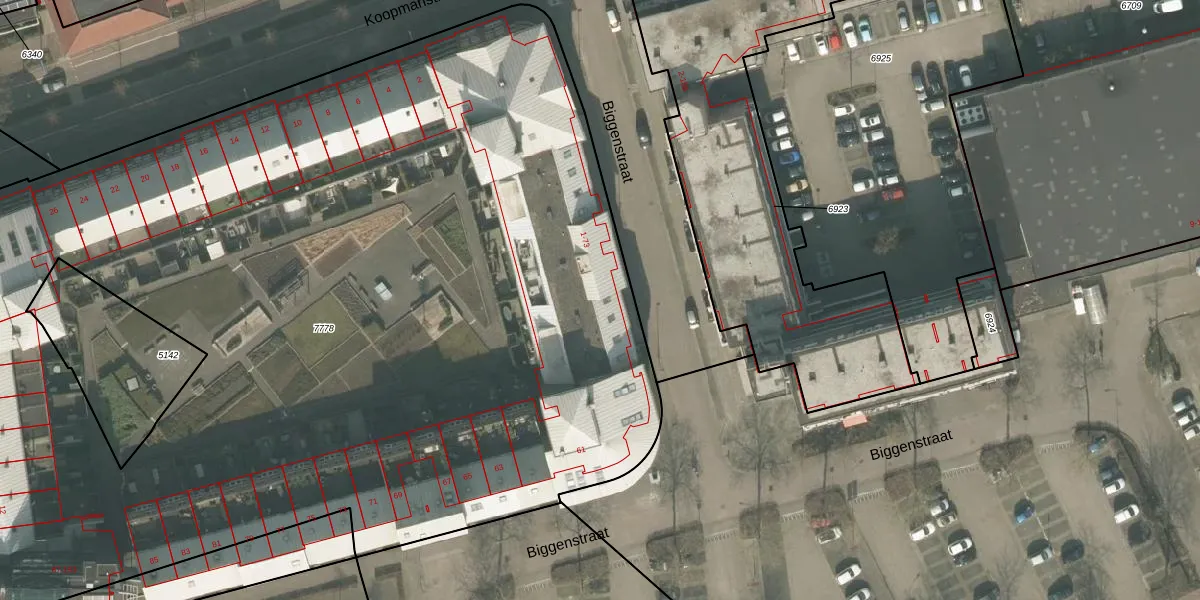 Het perceel waarop Biggenstraat 33 staat heeft een oppervlakte van 8022 m². Dit is een zeer groot perceel. De perceeloppervlakte wordt geregistreerd door het Kadaster. Gedetailleerde informatie over de maten van dit perceel kunt u vinden in het rapport Kadastrale kaart met maatvoering van Biggenstraat 33.