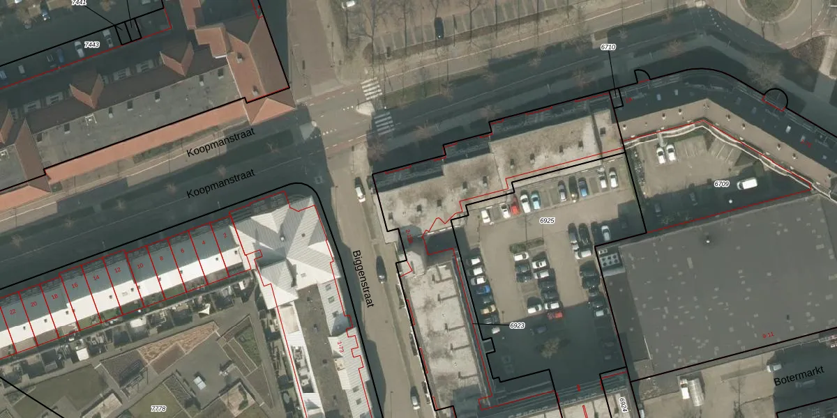Het perceel waarop Biggenstraat 44 staat heeft een oppervlakte van 1973 m². Dit is een zeer groot perceel. De perceeloppervlakte wordt geregistreerd door het Kadaster. Gedetailleerde informatie over de maten van dit perceel kunt u vinden in het rapport Kadastrale kaart met maatvoering van Biggenstraat 44.
