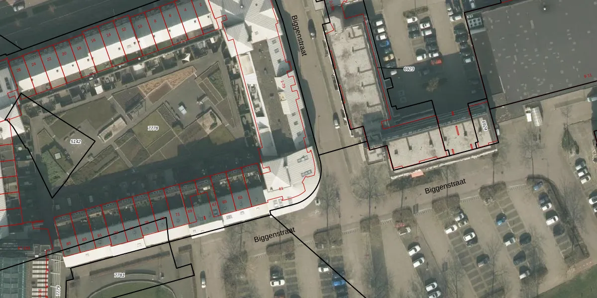 Het perceel waarop Biggenstraat 53 staat heeft een oppervlakte van 8022 m². Dit is een zeer groot perceel. De perceeloppervlakte wordt geregistreerd door het Kadaster. Gedetailleerde informatie over de maten van dit perceel kunt u vinden in het rapport Kadastrale kaart met maatvoering van Biggenstraat 53.