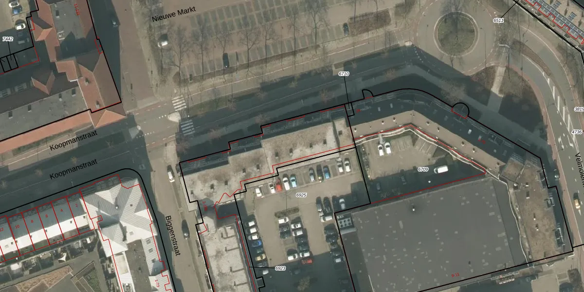 Het perceel waarop Biggenstraat 54 staat heeft een oppervlakte van 1973 m². Dit is een zeer groot perceel. De perceeloppervlakte wordt geregistreerd door het Kadaster. Gedetailleerde informatie over de maten van dit perceel kunt u vinden in het rapport Kadastrale kaart met maatvoering van Biggenstraat 54.