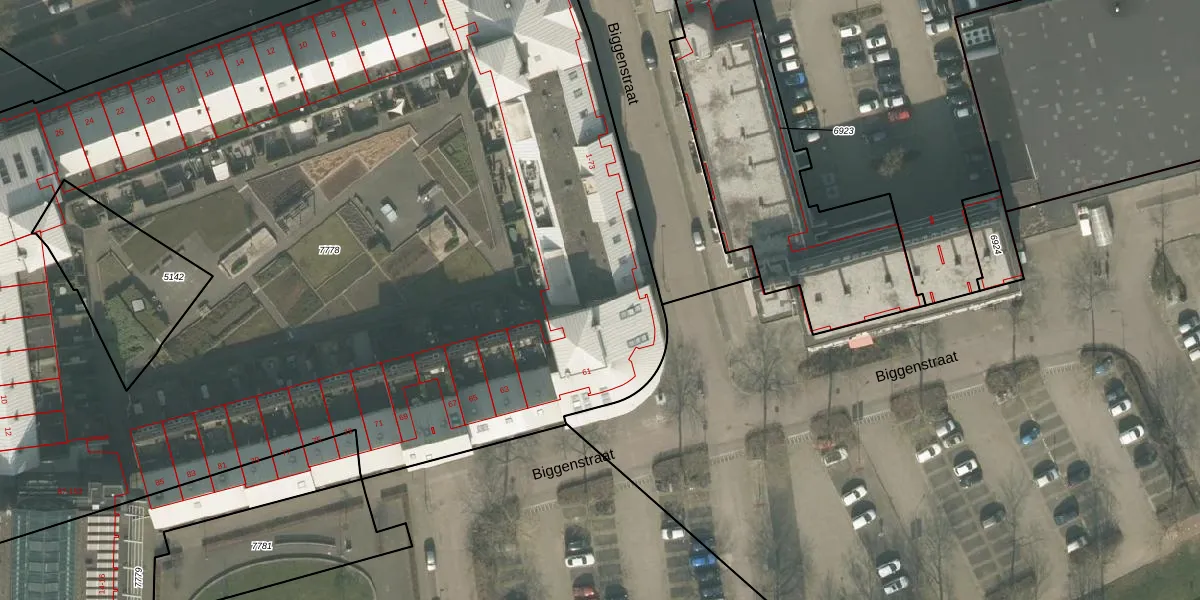 Het perceel waarop Biggenstraat 69 staat heeft een oppervlakte van 8022 m². Dit is een zeer groot perceel. De perceeloppervlakte wordt geregistreerd door het Kadaster. Gedetailleerde informatie over de maten van dit perceel kunt u vinden in het rapport Kadastrale kaart met maatvoering van Biggenstraat 69.