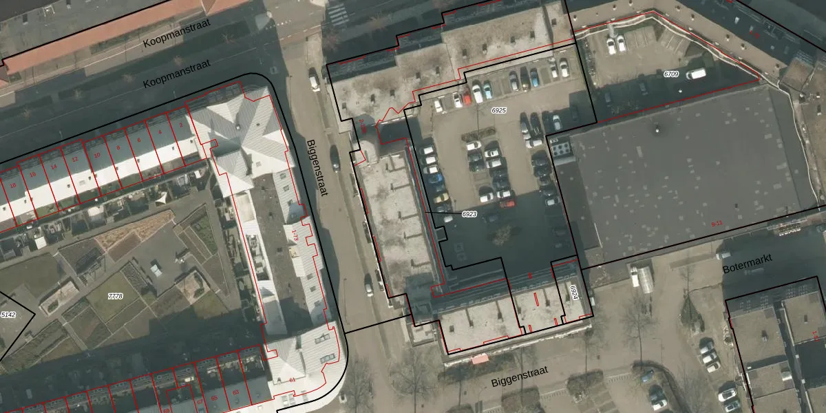 Het perceel waarop Biggenstraat 84 staat heeft een oppervlakte van 1973 m². Dit is een zeer groot perceel. De perceeloppervlakte wordt geregistreerd door het Kadaster. Gedetailleerde informatie over de maten van dit perceel kunt u vinden in het rapport Kadastrale kaart met maatvoering van Biggenstraat 84.