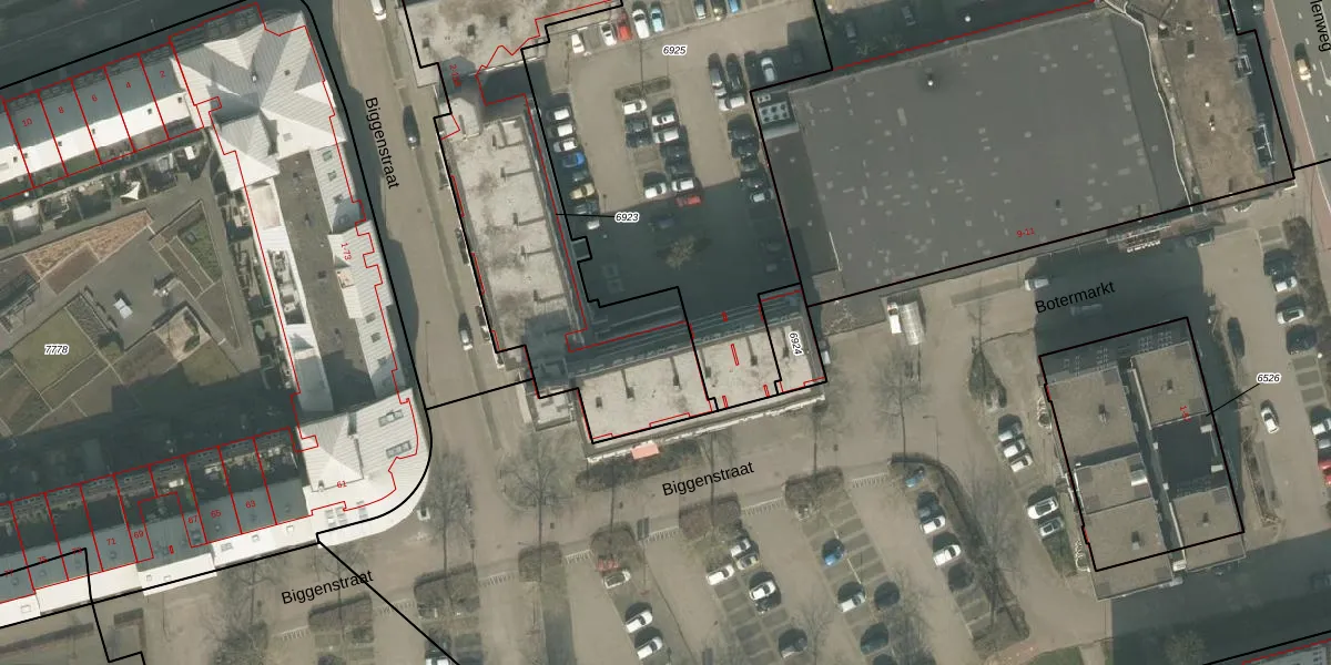 Het perceel waarop Biggenstraat 96 staat heeft een oppervlakte van 1973 m². Dit is een zeer groot perceel. De perceeloppervlakte wordt geregistreerd door het Kadaster. Gedetailleerde informatie over de maten van dit perceel kunt u vinden in het rapport Kadastrale kaart met maatvoering van Biggenstraat 96.
