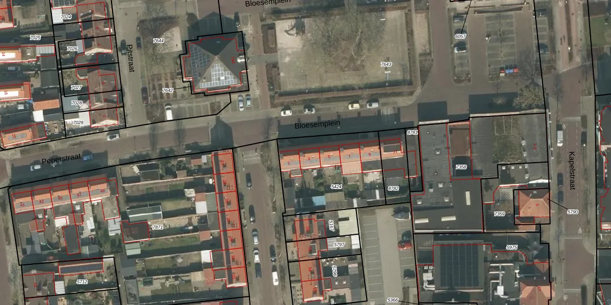 Het perceel waarop Bloesemplein 3 staat heeft een oppervlakte van 820 m². Dit is een groot perceel. De perceeloppervlakte wordt geregistreerd door het Kadaster. Gedetailleerde informatie over de maten van dit perceel kunt u vinden in het rapport Kadastrale kaart met maatvoering van Bloesemplein 3.