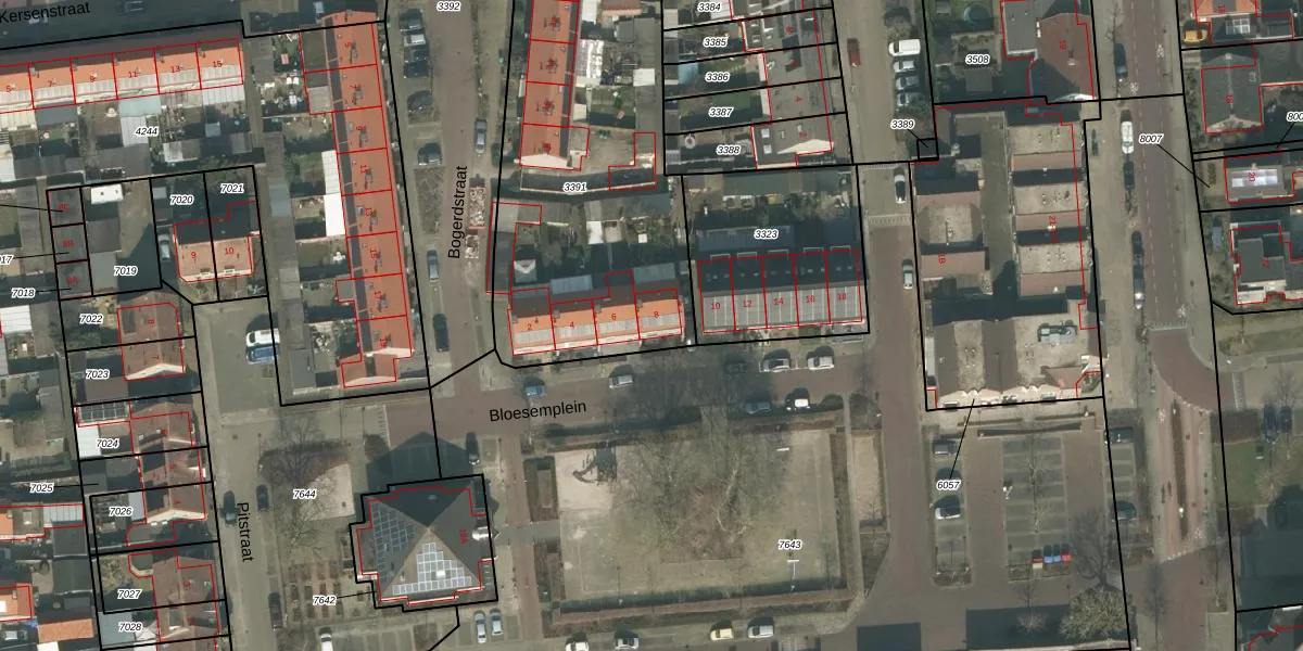 Het perceel waarop Bloesemplein 8 staat heeft een oppervlakte van 2386 m². Dit is een zeer groot perceel. De perceeloppervlakte wordt geregistreerd door het Kadaster. Gedetailleerde informatie over de maten van dit perceel kunt u vinden in het rapport Kadastrale kaart met maatvoering van Bloesemplein 8.