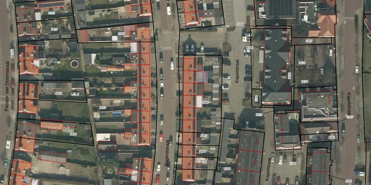 Het perceel waarop Bogerdstraat 62 staat heeft een oppervlakte van 958 m². Dit is een groot perceel. De perceeloppervlakte wordt geregistreerd door het Kadaster. Gedetailleerde informatie over de maten van dit perceel kunt u vinden in het rapport Kadastrale kaart met maatvoering van Bogerdstraat 62.