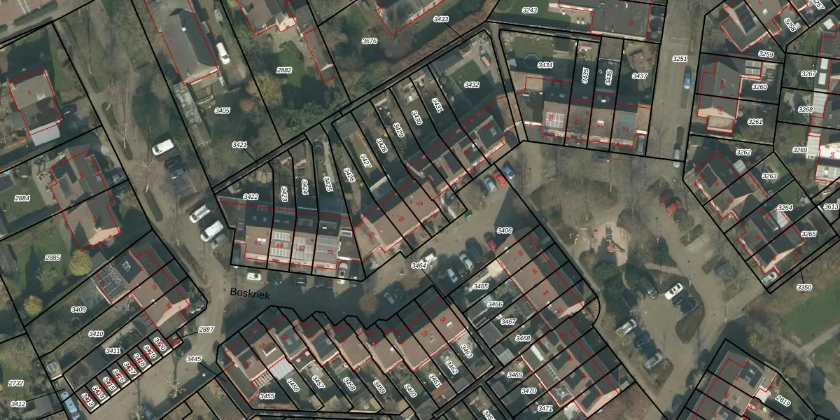 Het perceel waarop Boskriek 79 staat heeft een oppervlakte van 186 m². Dit is een middelgroot perceel. De perceeloppervlakte wordt geregistreerd door het Kadaster. Gedetailleerde informatie over de maten van dit perceel kunt u vinden in het rapport Kadastrale kaart met maatvoering van Boskriek 79.