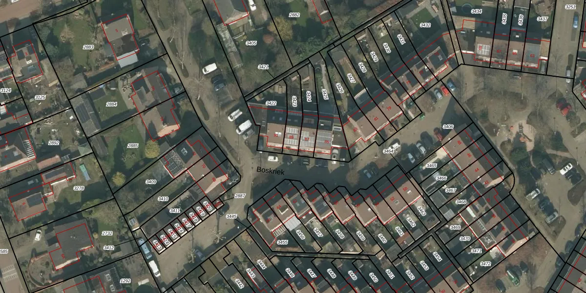 Gebruik de zoekbalk of klik op een perceel voor informatie over de adressen binnen dit perceel.