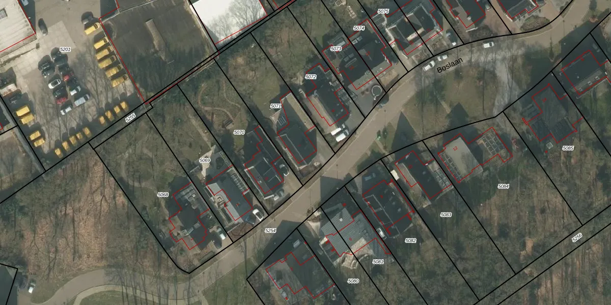 Het perceel waarop Boslaan 7 staat heeft een oppervlakte van 734 m². Dit is een groot perceel. De perceeloppervlakte wordt geregistreerd door het Kadaster. Gedetailleerde informatie over de maten van dit perceel kunt u vinden in het rapport Kadastrale kaart met maatvoering van Boslaan 7.