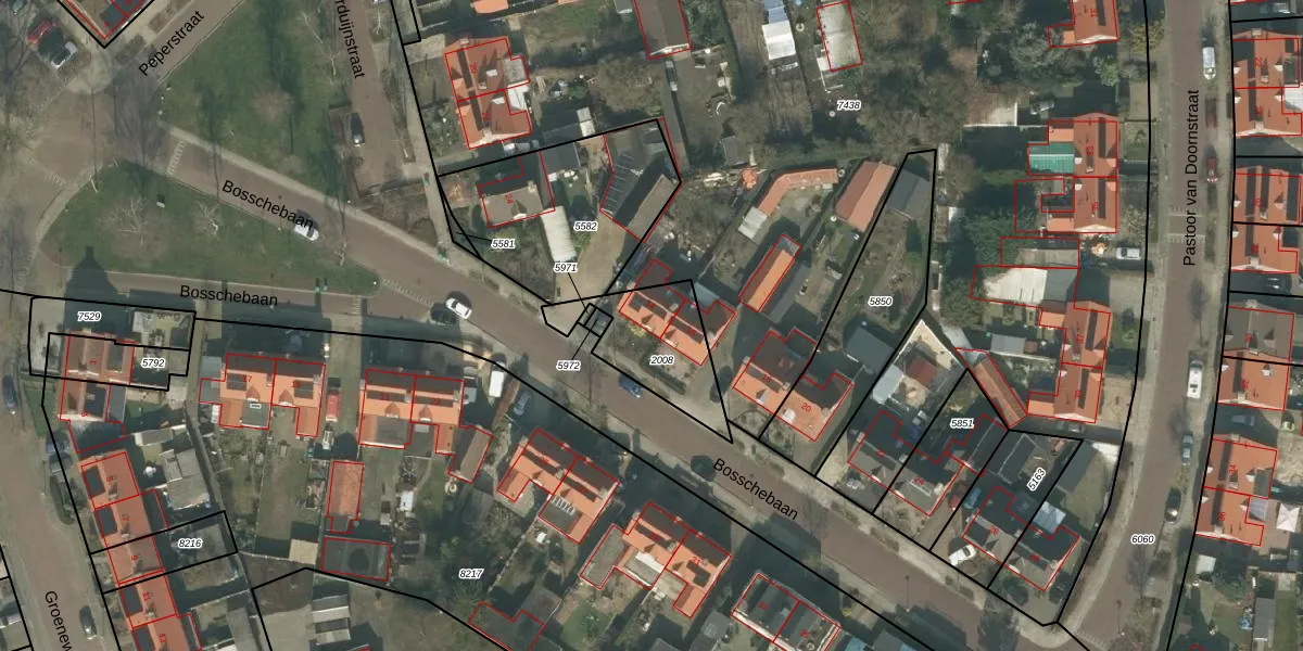 Het perceel waarop Bosschebaan 14 staat heeft een oppervlakte van 323 m². Dit is een groot perceel. De perceeloppervlakte wordt geregistreerd door het Kadaster. Gedetailleerde informatie over de maten van dit perceel kunt u vinden in het rapport Kadastrale kaart met maatvoering van Bosschebaan 14.