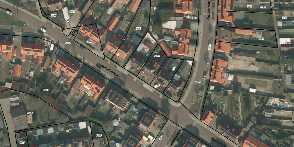 Gebruik de zoekbalk of klik op een perceel voor informatie over de adressen binnen dit perceel.