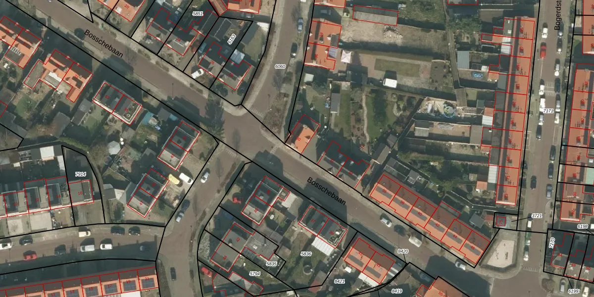 Het perceel waarop Bosschebaan 30 staat heeft een oppervlakte van 9010 m². Dit is een zeer groot perceel. De perceeloppervlakte wordt geregistreerd door het Kadaster. Gedetailleerde informatie over de maten van dit perceel kunt u vinden in het rapport Kadastrale kaart met maatvoering van Bosschebaan 30.