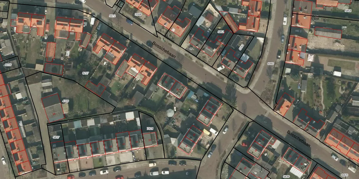 Het perceel waarop Bosschebaan 35 staat heeft een oppervlakte van 7715 m². Dit is een zeer groot perceel. De perceeloppervlakte wordt geregistreerd door het Kadaster. Gedetailleerde informatie over de maten van dit perceel kunt u vinden in het rapport Kadastrale kaart met maatvoering van Bosschebaan 35.