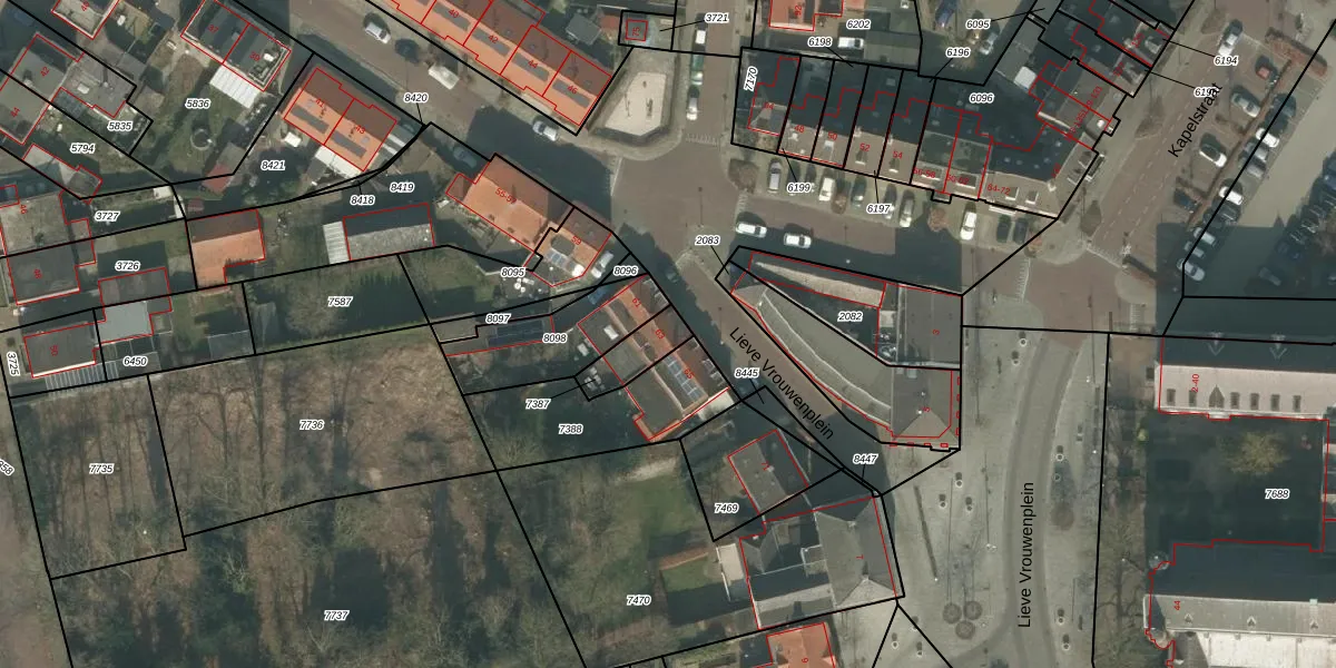 Het adres ligt op het perceel UDN00-M-7387, dat zich in de kadastrale gemeente Uden bevindt. Het perceel is 100 m² groot. Dat is kleiner dan de gemiddelde perceeloppervlakte in Uden, dat op 3255,8 m² ligt. De grootste perceeloppervlakte in de kadastrale gemeente is 1,06 km². De kleinste oppervlakte bedraagt 0 m². Dit is het enige adres dat aanwezig is op het perceel. In de Basisregistratie Kadaster (BRK) werden de grenzen van het perceel geregistreerd op 16-07-2009.