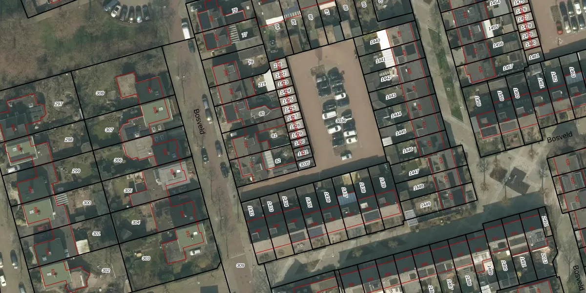 Bosveld 214-A-2 is gelegen op kadastraal perceel UDN00N1430. Deze kadastrale aanduiding is uniek en wordt gebruikt door het Kadaster om eigendomsrechten en andere zakelijke rechten vast te leggen. Het perceel maakt onderdeel uit van de kadastrale gemeente Uden.
