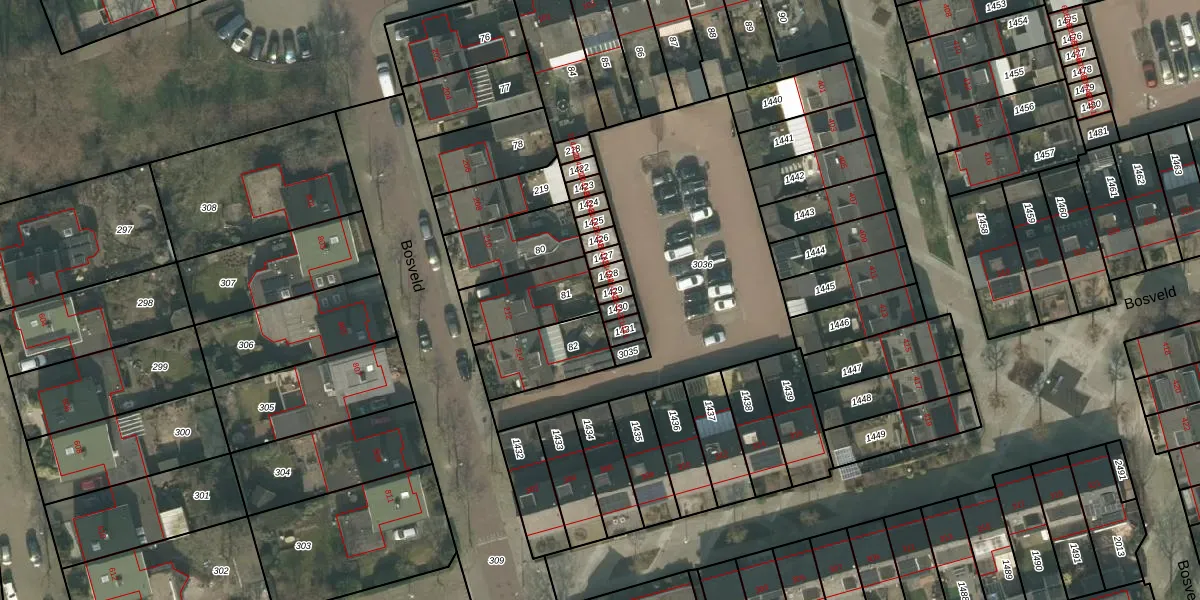 Bosveld 214-A-3 is gelegen op kadastraal perceel UDN00N1429. Deze kadastrale aanduiding is uniek en wordt gebruikt door het Kadaster om eigendomsrechten en andere zakelijke rechten vast te leggen. Het perceel maakt onderdeel uit van de kadastrale gemeente Uden.