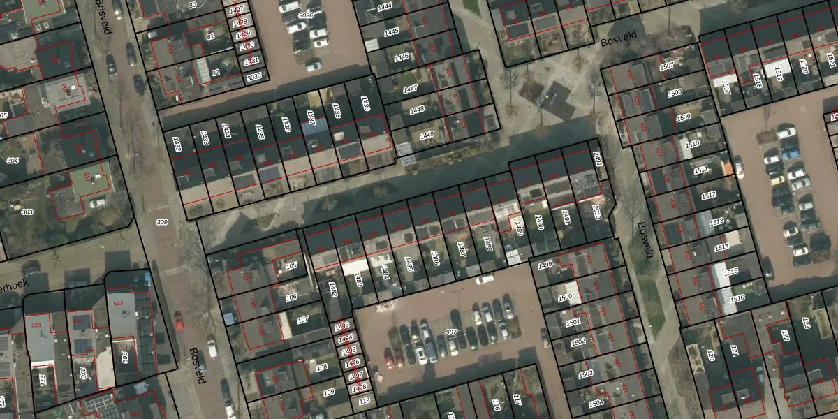 Het perceel waarop Bosveld 309 staat heeft een oppervlakte van 141 m². Dit is een middelgroot perceel. De perceeloppervlakte wordt geregistreerd door het Kadaster. Gedetailleerde informatie over de maten van dit perceel kunt u vinden in het rapport Kadastrale kaart met maatvoering van Bosveld 309.